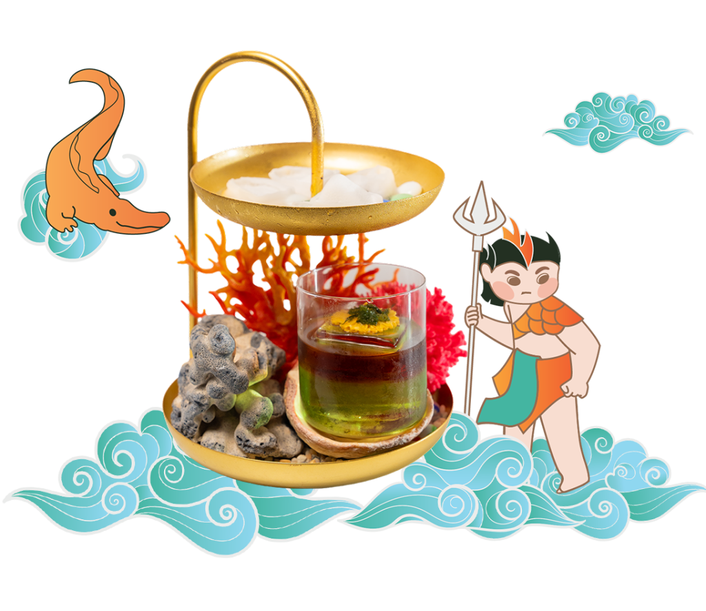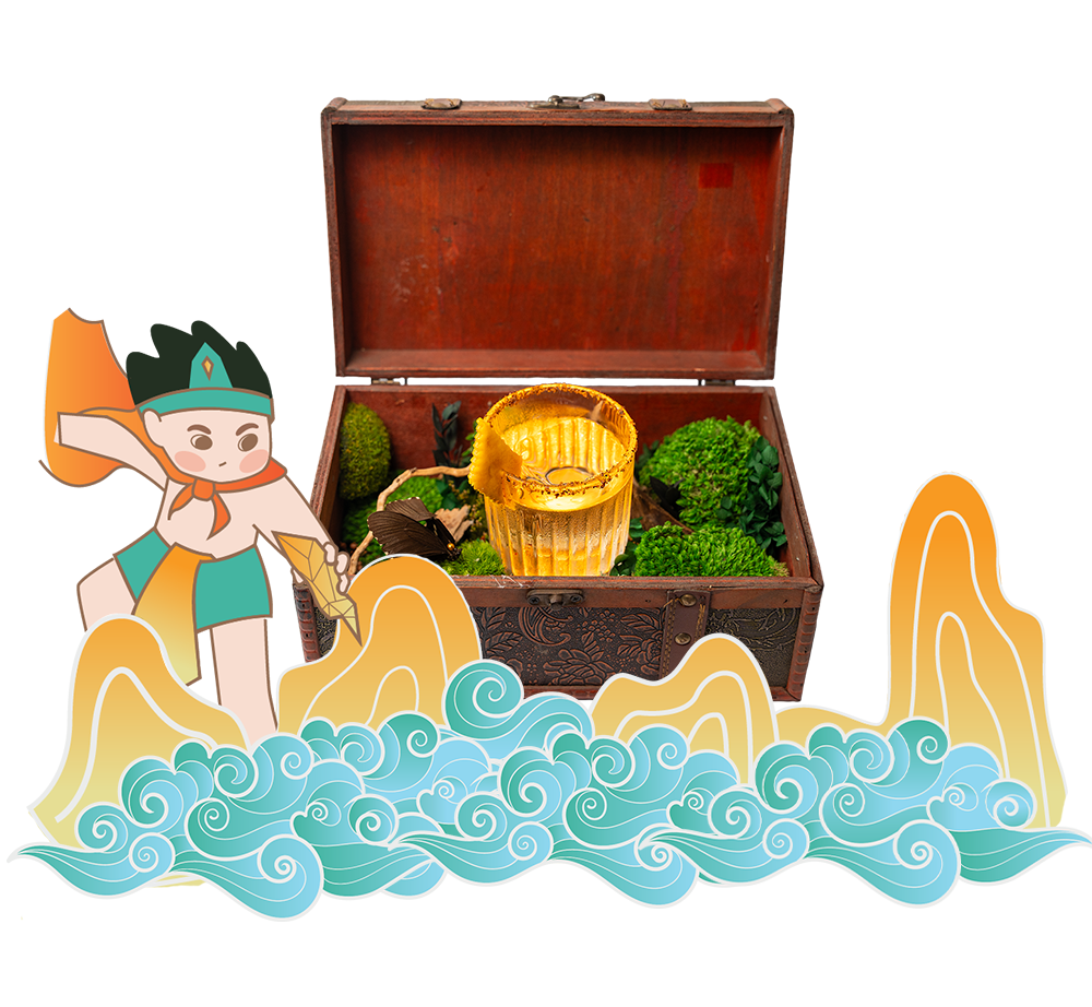 Opening the royal decree to select a consort, this cocktail is both majestic and graceful. The regal flavor of rice wine and green tea mingles with notes of youthful peach, settling into the profound depth of D.O.M.